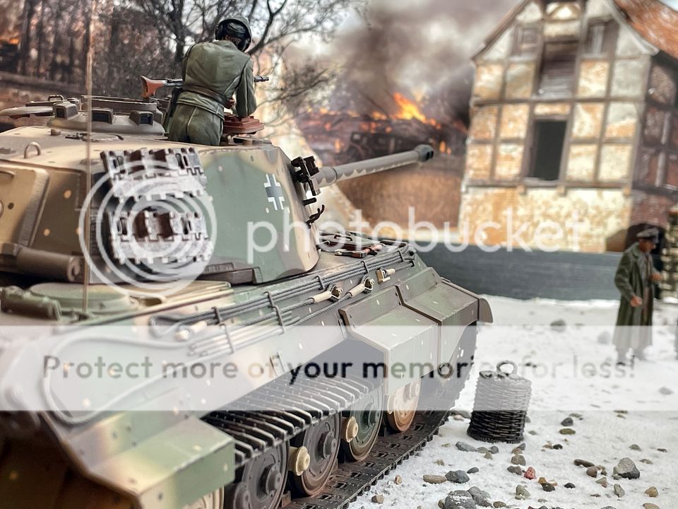 Having received the two Jenkins King Tigers and planning a trip to La Gleize, I decided to create a display. Still waiting for a house facade to finish the display off, the current wall is a stand in. The battle for the last barrels of fuel has begun in December 1944.