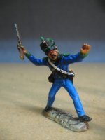 I did some conversions on two of the Mexican poses and painted them as light infantry with Baker Rifles. Several modern reconstructions of the Cazadores show waist belts that are not on the castings. Between several modern pictures and photos of a reenactment group in Texas I came up with this version.