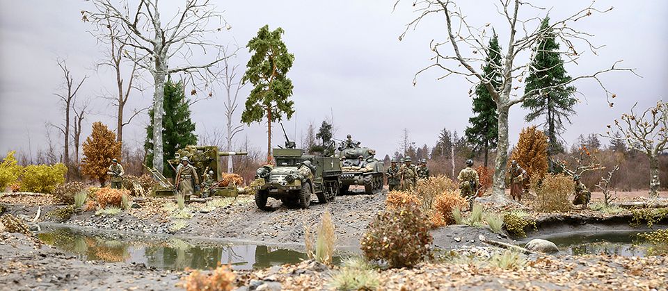 I'm going to start out with a scene from Autumn 1944, featuring schwere Panzerjäger, both towed and mot Z, and SS Panzergrenadiers.