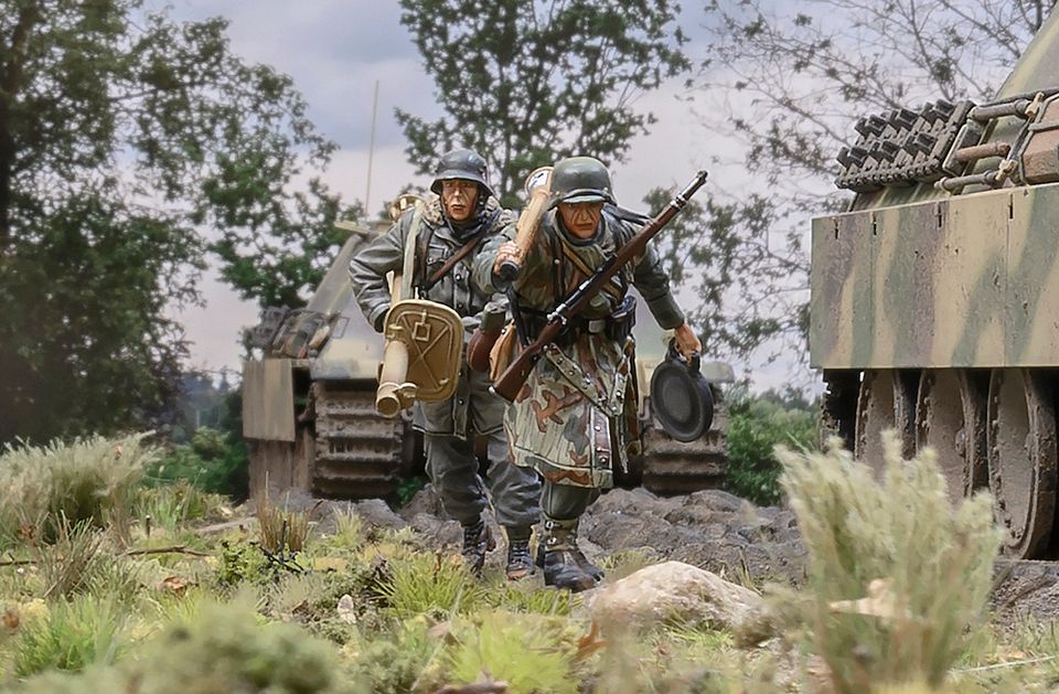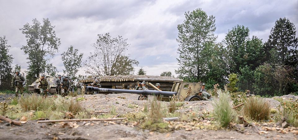 I'm going to start out with a scene from Autumn 1944, featuring schwere Panzerjäger, both towed and mot Z, and SS Panzergrenadiers.